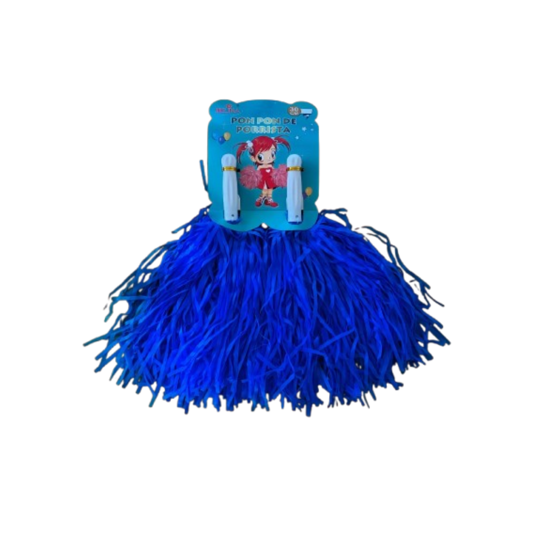 pompones porrista azul de BELINA, en un paquete de 2 unidades y con una longitud de 30 cm, son ideales para animar, decorar o completar disfraces y actividades deportivas.