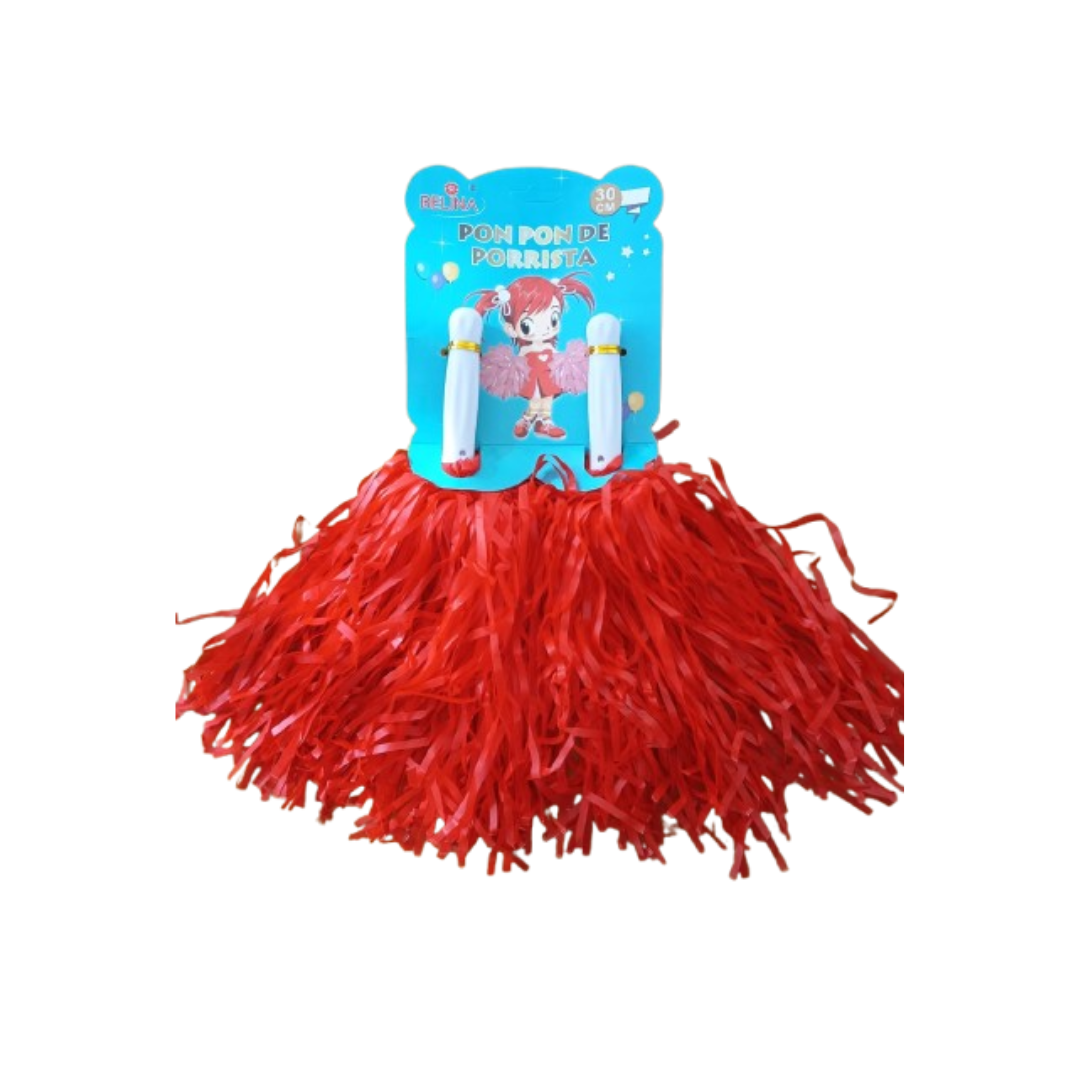 pompones porrista rojos de BELINA, en un paquete de 2 unidades y con una longitud de 30 cm, son perfectos para animar, decorar o completar disfraces y actividades deportivas.